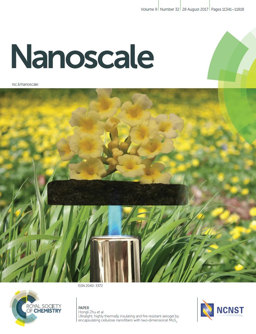 MIE Assistant Professor Hongli Zhu’s research on “Ultralight, highly thermally insulating and fire resistant aerogel by encapsulating cellulose nanofibers with two-dimensional MoS2” was featured on the inside cover of the Nanoscale journal.