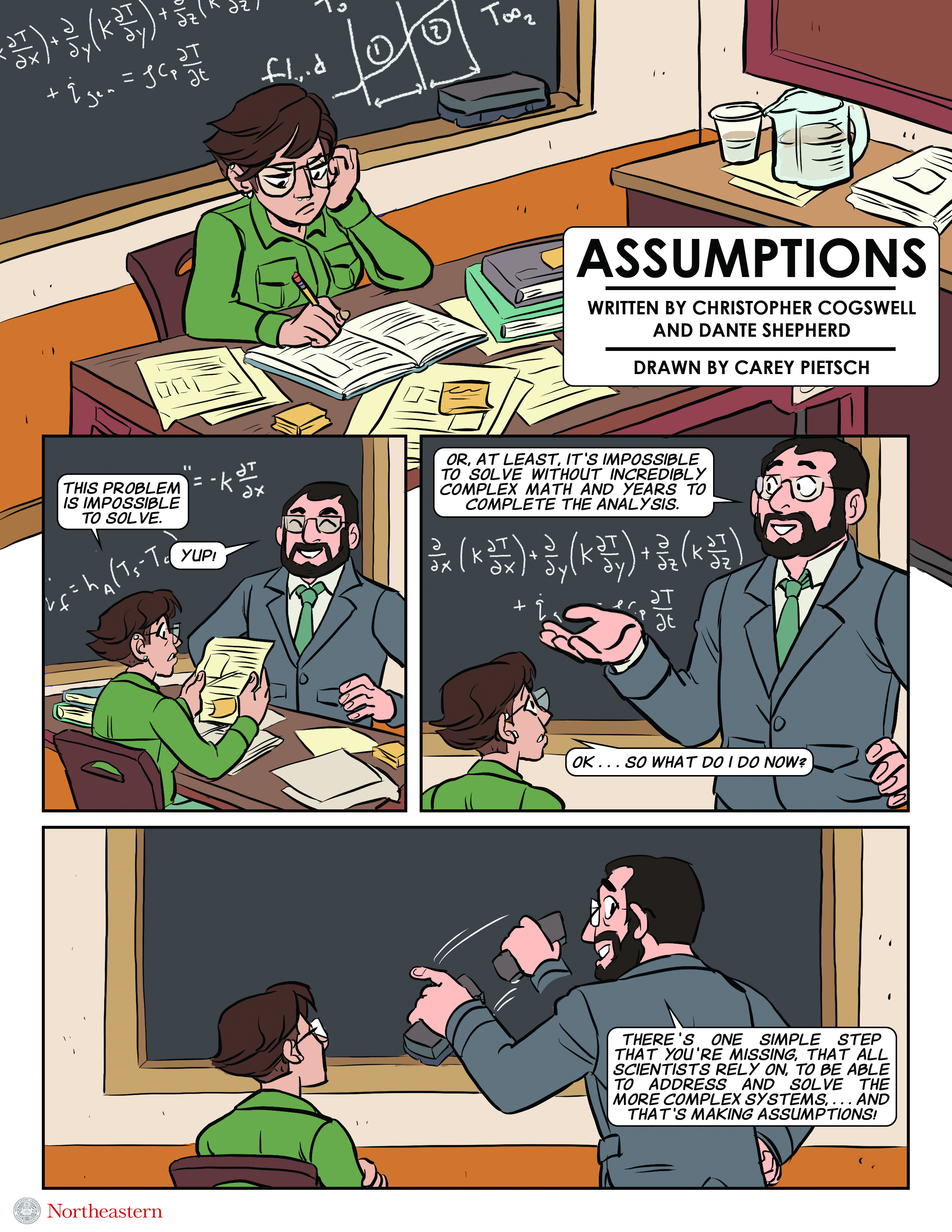 Science comic work written by ChE Associate Teaching Professor Lucas Landherr and graduate student Christopher Cogswell will be part of an art exhibit at Waterfall Arts in Belfast, Maine from September 23-November 11.