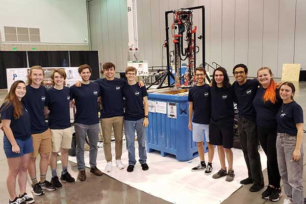 A team of undergraduate engineering students built the PARSEC (Percussive And Rotary Surveying & Extracting Carousel) robot to extract, melt, and purify water buried on the Mars surface. The team placed 2nd in NASA’s Revolutionary Aerospace Systems Concepts–Academic Linkages (RASC-AL) competition in the fall and recently won an Innovation award at this year’s RISE expo.