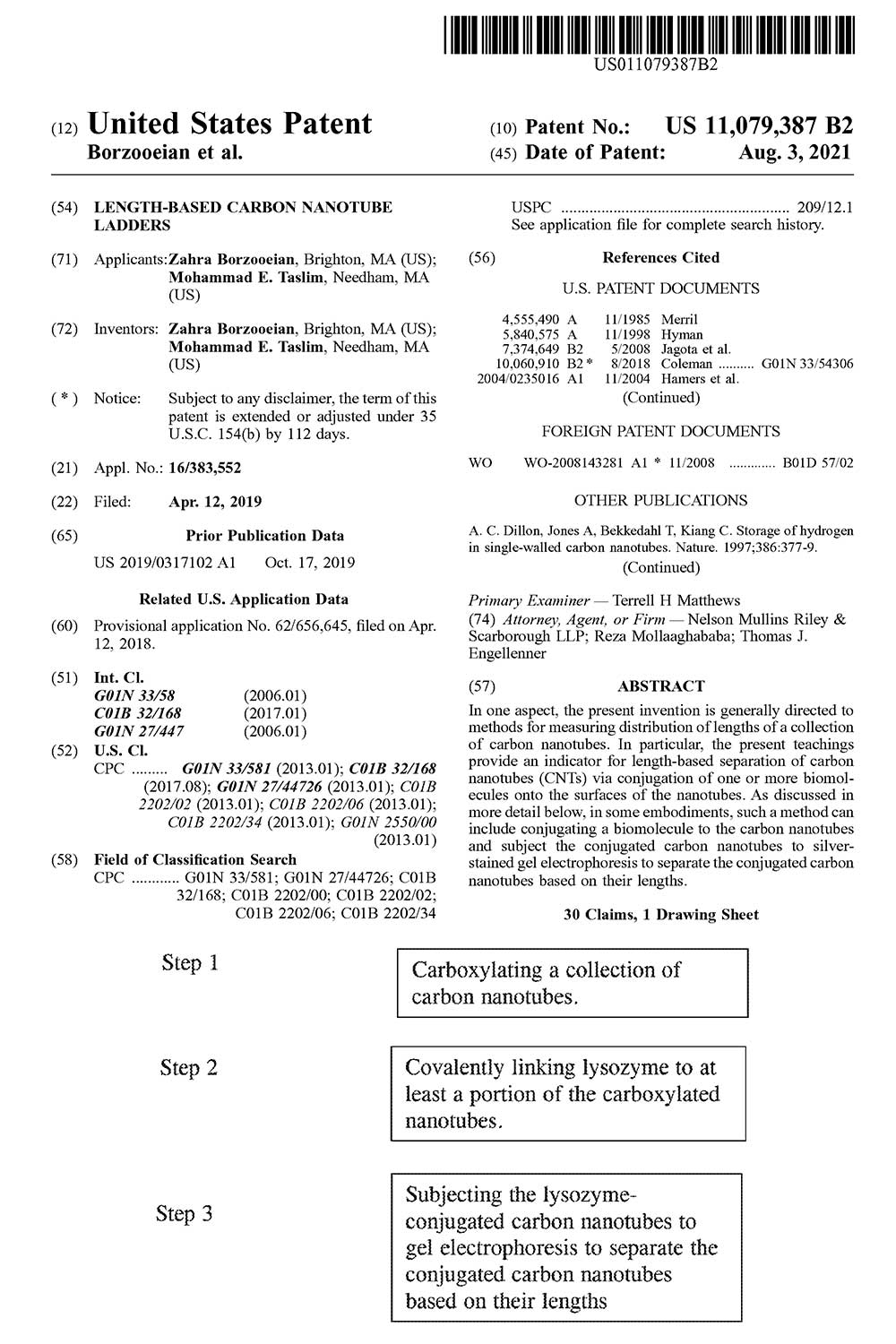 MIE Professor Mohammad Taslim was awarded a patent for “Length-based carbon nanotube ladders.”