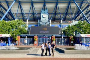 Gezer, Gadon, Jaeger-Helton, and Goldstein outside the Arthur Ashe Stadium.