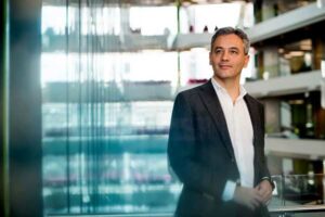 Tommaso Melodia, Director of the WIoT lab, poses for a portrait in the ISEC building. Photo by Matthew Modoono/Northeastern University