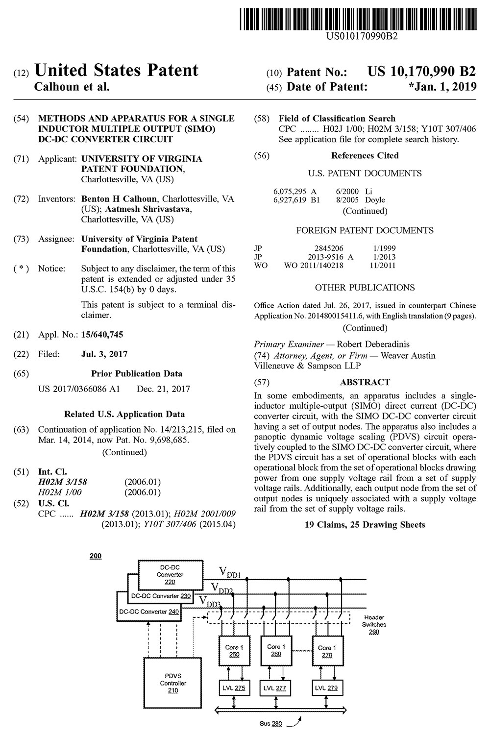 ECE Assistant Professor Aatmesh Shrivastava was awarded a patent for “Single Inductor Multiple Output DC-DC converter.”