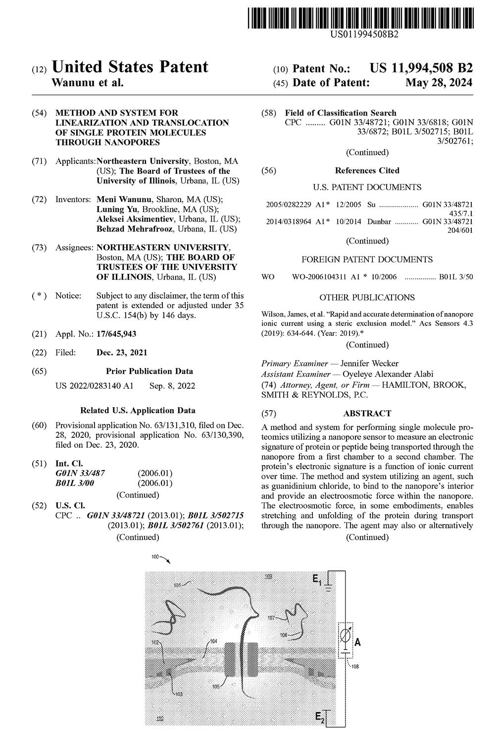 COS/BioE Professor Meni Wanunu received a patent to create a “Method and system for linearization and translocation of single protein molecules through nanopores.”