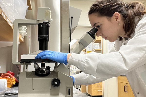The three co-op experiences and capstone project of Jessica Chen, E’24, bioengineering, has solidified a love for cell culture and the cellular parts of bioengineering. She had co-ops at Gentuity, a medical device company; Ensoma, a biotech company; and through the CaNCURE program at Northeastern, that places undergraduate students in cancer nanomedicine positions in Boston.