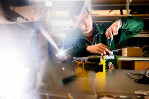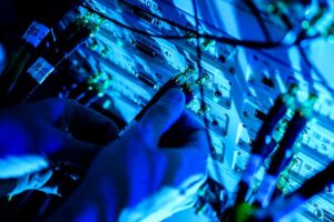 This article originally appeared on Northeastern Global News. It was published by Cesareo Contreras. Main photo: Tommaso Melodia, William Lincoln Smith Chair Professor in the Department of Electrical and Computer Engineering, and director of the Institute for the Wireless Internet of Things, works inside Northeastern’s Interdisciplinary Science and Engineering Complex. Photo by Matthew Modoono/Northeastern University